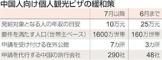 大幅に緩和したことを受け、中国人向け個人観光ビザの