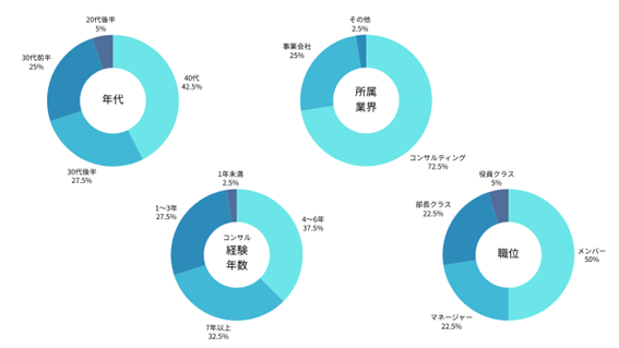 今回のレポートでは、現役コンサルタント、コンサルを卒業した方、そして再び業界に戻った方の合計40名を対象に、