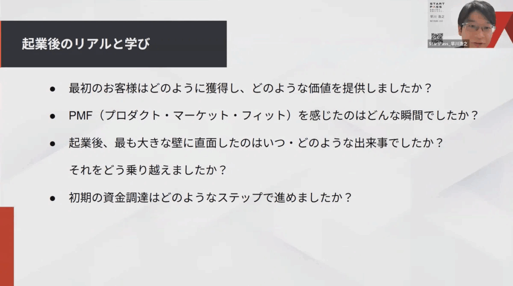 また、起業最初期の道のりについても深く伺いました。それぞれ、この領域で事業を進めると決めてからの最初の苦労、そして最初の顧客獲得、資金調達について赤裸々に語っていただきました。