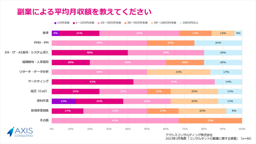 コンサルタントの副業実態調査:月収10~30万円が最多、新規事業・CxOが人気