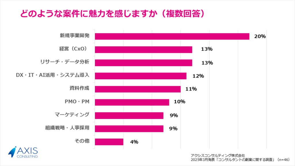 コンサルタントが特に魅力を感じる副業案件は次の通りです。