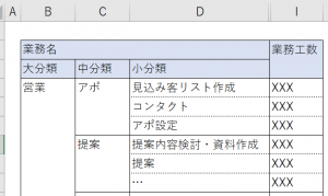 例えば、売上パートですと、合計となる「売上」と、その内訳となる「XXX事業」「YYY事業」「ZZZ事業」の記載が始まる位置が異なります。一列ずらすことによって合計と内訳の区分が大変わかりやすくなります。