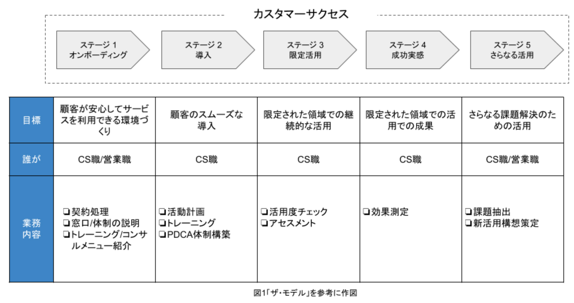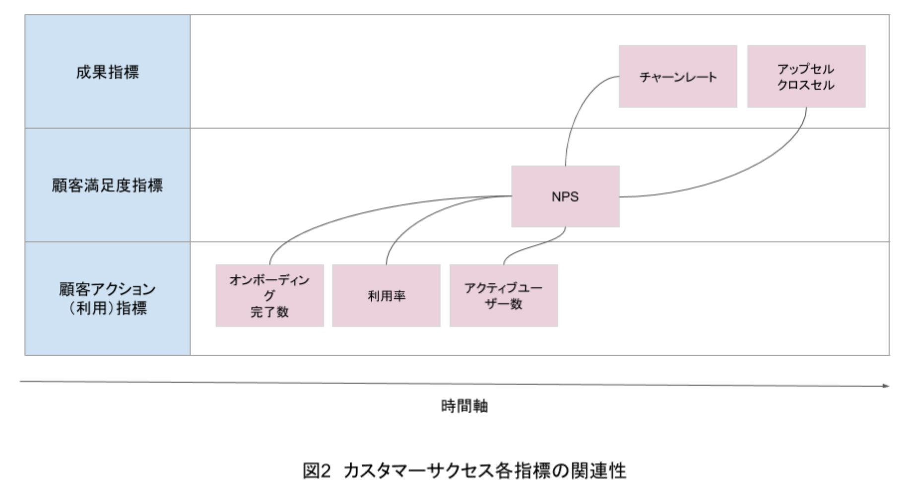 一方、カスタマーサクセスの組成目的や、目標とする指標はあまり違いはありません。下記の図2を参照しながら解説していきます。