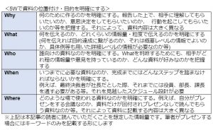 文章中心の資料、写真や図などのイメージ中心の資料、どちらが良い資料と言えるのかは、その資料が何を目的として、どのように利用されるのかに依ります。それらを明確にしないとせっかく作成した資料もピントがずれたものとなってしまい、手戻りしてしまうか相手には全く刺さらない事態になってしまいます。