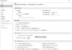 また、自動計算等に関してもオプションから下記のように設定します。データテーブル以外は自動計算にし、反復計算を行うことで不必要に循環参照エラーが出ないようにします。