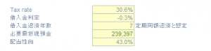 借入金等に比して比較的シンプルなモデルですが、配当の計算時は過去の配当性向を計算し、プロジェクションにおいて当てはめる数値をインプットします。以下のようなイメージです。