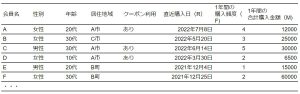 上記は一部の抜粋で、実際には全会員顧客に対してこちらのリストアップをしたものとします。