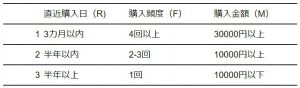 F:Frequency(どのくらいの頻度で購入したか?)